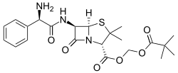 Pivampicillin is a pivaloyloxymethyl ester of ampicillin. It is a prodrug, which is thought to enhance the oral bioavailability of ampicillin because of its greater lipophilicity compared to that of ampicillin.