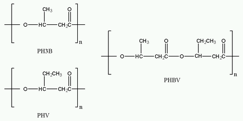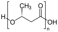Polyhydroxybutyrate (PHB) is a polyhydroxyalkanoate (PHA), a polymer belonging to the polyesters class that are of interest as bio-derived and biodegradable plastics.[1] The poly-3-hydroxybutyrate (P3HB) form of PHB is probably the most common type of polyhydroxyalkanoate, but other polymers of this class are produced by a variety of organisms: these include poly-4-hydroxybutyrate (P4HB), polyhydroxyvalerate (PHV), polyhydroxyhexanoate (PHH), polyhydroxyoctanoate (PHO) and their copolymers.