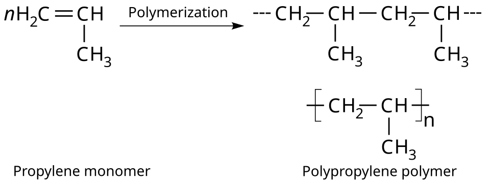Polypropylene is produced by the chain-growth polymerization of propene: