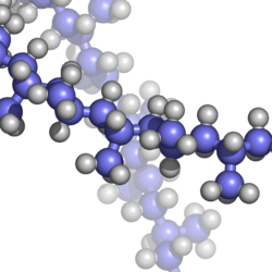 Propylene molecules prefer to join together "head-to-tail", giving a chain with methyl groups on every other carbon, but some randomness occurs.[10] Polypropylene at room temperature is resistant to fats and almost all organic solvents, apart from strong oxidants. Non-oxidizing acids and bases can be stored in containers made of PP. At elevated temperature, PP can be dissolved in nonpolar solvents such as xylene, tetralin and decalin. Due to the tertiary carbon atom, PP is chemically less resistant than PE (see Markovnikov rule).[11]