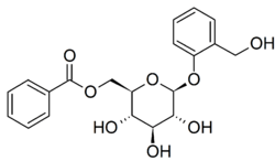 Populin is a glucoside occurring in the bark, buds and leaves of certain species of poplar.[1][2] The alkaline cleavage of populin produces benzoate and the glucoside salicin.[1]