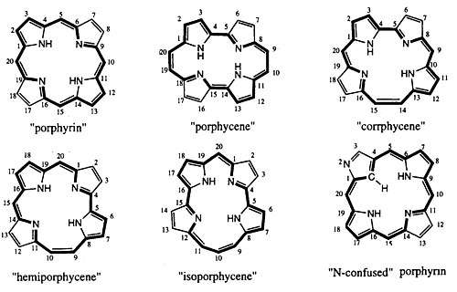 - ^ Hiroyuki F (1994). ""N-Confused Porphyrin": A New Isomer of Tetraphenylporphyrin". J. Am. Chem. Soc. 116 (2): 767. Bibcode:1994JAChS.116..767F. doi:10.1021/ja00081a047.