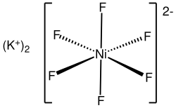 - ^ Stein, Lawrence; Neil, John M.; Alms, Gregory R. (November 1969). "Properties of potassium hexafluoronickelates(III) and -(IV). Absorption spectra of nickel(III) and -(IV) in hydrogen fluoride solutions". Inorganic Chemistry. 8 (11): 2472–2476. doi:10.1021/ic50081a045. ISSN 0020-1669.