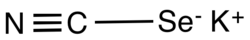 Potassium selenocyanate is the inorganic compound with the formula KSeCN. It is a hygroscopic white solid that is soluble in water, decomposing in air to red selenium and potassium cyanide. The compound has been characterized by X-ray crystallography, which confirms that it is a salt. The C-N and C-Se distances are 112 and 183 pm, respectively consistent with triple and single bonds.[1]