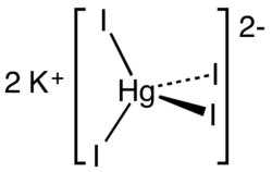 Potassium tetraiodomercurate(II) is an inorganic compound with the chemical formula K2[HgI4]. It consists of potassium cations and tetraiodomercurate(II) anions. It is the active agent in Nessler's reagent, used for detection of ammonia.[2]