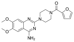 Prazosin, sold under the brand name Minipress among others, is a medication used to treat high blood pressure, symptoms of an enlarged prostate, and nightmares related to post-traumatic stress disorder (PTSD).[6] It is an α1 blocker.[6] It is a less preferred treatment of high blood pressure.[6] Other uses may include heart failure and Raynaud syndrome.[7] It is taken by mouth.[6]