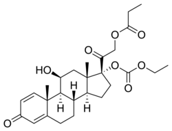 | Other names | {2-[(8S,9S,10R,11S,13S,14S,17R)-17-ethoxycarbonyloxy-11-hydroxy-10,13-dimethyl-3-oxo-7,8,9,11,12,14,15,16-octahydro-6H-cyclopenta[a]phenanthren-17-yl]-2-oxoethyl} propanoate |