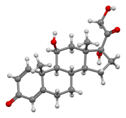 Common side effects with short-term use include nausea, difficulty concentrating, insomnia, increased appetite, and fatigue.[5] More severe side effects include psychiatric problems, which may occur in about 5% of people.[9] Common side effects with long-term use include bone loss, weakness, yeast infections, and easy bruising.[6] While short-term use in the later part of pregnancy is safe, long-term use or use in early pregnancy is occasionally associated with harm to the baby.[1] It is a glucocorticoid made from hydrocortisone (cortisol).[10]