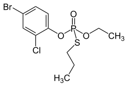 Profenofos is an organophosphate insecticide. It is a liquid with a pale yellow to amber color and a garlic-like odor.[1] It was first registered in the United States in 1982.[3]: 1 As of 2015, it was not approved in the European Union.[4]