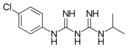 Proguanil, also known as chlorguanide and chloroguanide, is a medication used to treat and prevent malaria.[3][4] It is often used together with chloroquine or atovaquone.[4][3] When used with chloroquine the combination will treat mild chloroquine resistant malaria.[3] It is taken by mouth.[4]