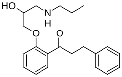 Propafenone contains a stereocenter and consists of two enantiomers. This is a racemate, a 1:1 mixture of (R)– and (S)–forms:[5]