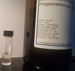 - ^ a b c d e f Hensel, A. (2018). "Propanal". Ullmann's Encyclopedia of Industrial Chemistry. Weinheim: Wiley-VCH. doi:10.1002/14356007.a22_157.pub3. ISBN 978-3527306732.