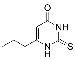 Propylthiouracil (PTU) is a medication used to treat hyperthyroidism.[2] This includes hyperthyroidism due to Graves' disease and toxic multinodular goiter.[2] In a thyrotoxic crisis it is generally more effective than methimazole.[2] Otherwise it is typically only used when methimazole, surgery, and radioactive iodine is not possible.[2] It is taken by mouth.[2]