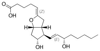 - ^ Johnson RA, Lincoln FH, Nidy EG, Schneider WP, Thompson JL, Axen U (1978). "Synthesis and characterization of prostacyclin, 6-ketoprostaglandin F1.alpha., prostaglandin I1, and prostaglandin I3". Journal of the American Chemical Society. 100 (24): 7690–7705. Bibcode:1978JAChS.100.7690J. doi:10.1021/ja00492a043.