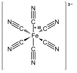 Despite the fact that it is prepared from cyanide salts, Prussian blue is not toxic because the cyanide groups are tightly bound to iron.[25] Both ferrocyanide ((Fe2+(CN)6)4−) and ferricyanide ((Fe3+(CN)6)3−) are particularly stable and non-toxic polymeric cyanometalates due to the strong iron coordination to cyanide ions. Although cyanide bonds well with transition metals in general like chromium, these non-iron coordination compounds are not as stable as iron cyanides, therefore increasing the risk of releasing CN− ions, and subsequently comparative toxicity.[26]