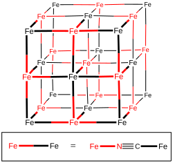- ^ A neutron diffraction study of Prussian blue, Fe4[Fe4(CN)6]3. 14D2O. 1974. Zeitschrift fur Physikalische Chemie. 92/354-357. doi:10.1524/zpch.1974.92.4-6.354.