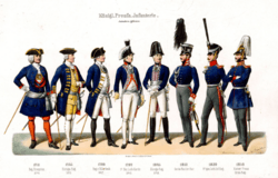- ^ Haythornthwaite, Philip (1991) Frederick the Great's Army – Infantry. Bloomsbury USA. p. 14. ISBN 1855321602