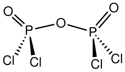 Pyrophosphoryl chloride is the inorganic compound with the formula P2O3Cl4. Its structure is O(POCl2)2. It is a colorless syrup. In terms of its chemical structure, the compound consists of two tetrahedral phosphorus sites that share an oxo bridge. The name implies that the compound is a derivative of pyrophosphoric acid, O(PO(OH)2)2.