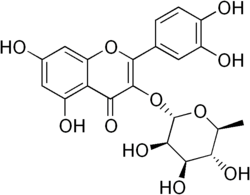 Quercitrin is a constituent of the dye quercitron. It can be found in Tartary buckwheat (Fagopyrum tataricum)[2] and in oaks species like the North American white oak (Quercus alba) and English oak (Quercus robur).[3] It is also found in Nymphaea odorata or Taxillus kaempferi.[4]