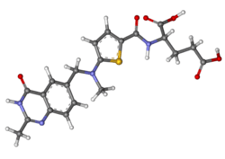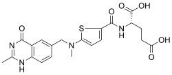 Raltitrexed (Thaltitrexed, Tomudex, TDX, ZD 1694) is an antimetabolite drug used in cancer chemotherapy. It is an inhibitor of thymidylate synthase, and is manufactured by AstraZeneca.[1]