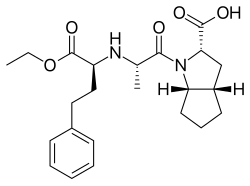 - ^ a b US patent 5061722, Volker Teetz, Rolf Geiger, Hansjorg Urbach, Reinhard Becker, Bernward Scholkens, "Cis, endo-2-azabicyclo-[3.3.0]-octane-3-carboxylic acids, a process for their preparation, agents containing these compounds and their use", issued 29 October 1991, assigned to Hoechst AG