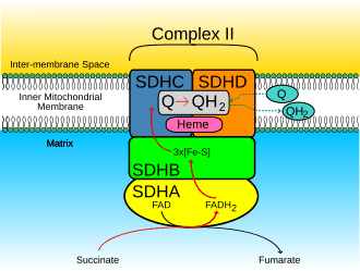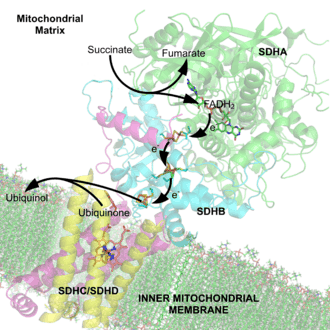 4. ^ a b Yankovskaya V, Horsefield R, Törnroth S, Luna-Chavez C, Miyoshi H, Léger C, et al. (January 2003). "Architecture of succinate dehydrogenase and reactive oxygen species generation". Science. 299 (5607): 700–704. Bibcode:2003Sci...299..700Y. doi:10.1126/science.1079605. PMID 12560550. S2CID 29222766.