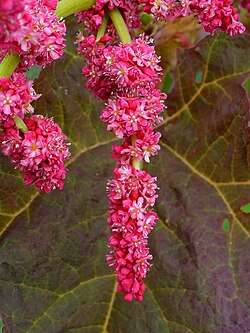 Rheum palmatum is a species of flowering plant in the knotweed family Polygonaceae. It is commonly called Chinese rhubarb,[1][2] ornamental rhubarb,[3] Turkey rhubarb[2] or East Indian rhubarb.[2]