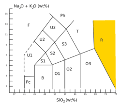 6. ^ Le Bas, M. J.; Streckeisen, A. L. (1991). "The IUGS systematics of igneous rocks". Journal of the Geological Society. 148 (5): 825–833. Bibcode:1991JGSoc.148..825L. CiteSeerX 10.1.1.692.4446. doi:10.1144/gsjgs.148.5.0825. S2CID 28548230.