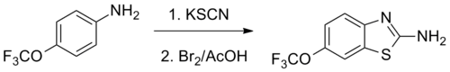 Riluzole can be prepared beginning with the reaction of 4-(trifluoromethoxy)aniline with potassium thiocyanate followed by reaction with bromine, forming the thiazole ring.[19][20][21]