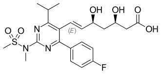 - ^ Li Y, Jiang X, Lan K, Zhang R, Li X, Jiang Q (October 2007). "Pharmacokinetic properties of rosuvastatin after single-dose, oral administration in Chinese volunteers: a randomized, open-label, three-way crossover study". Clinical Therapeutics. 29 (10): 2194–203. doi:10.1016/j.clinthera.2007.10.005. PMID 18042475.
