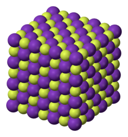 Rubidium fluoride (RbF) is the fluoride salt of rubidium. It is a white crystalline solid with a cubic crystal structure, similar to common salt. It forms two different hydrates, a sesquihydrate with the stoichiometric composition 2RbF·3H2O and a third hydrate with the composition 3RbF·H2O.[5]