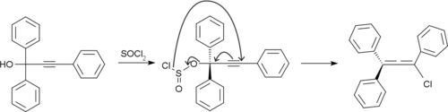 Rubrene is prepared by treating 1,1,3-Triphenyl-2-propyn-1-ol with thionyl chloride.[9]