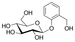 Salicin is an alcoholic β-glucoside. Salicin is produced in (and named after) willow (Salix) bark. It is a biosynthetic precursor to salicylaldehyde.[4]