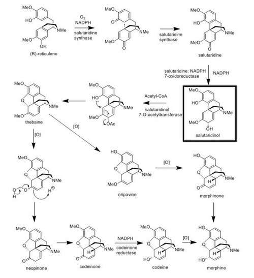 - ^ Grothe, Torsten, Rainer Lenz, and Toni M. Kutchan. "Molecular characterization of the salutaridinol 7-O-acetyltransferase involved in morphine biosynthesis in opium poppy Papaver somniferum." Journal of Biological Chemistry 276.33 (2001): 30717-30723.