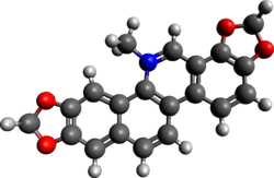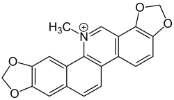 Sanguinarine is a polycyclic quaternary alkaloid. It is extracted from some plants, including the bloodroot plant (Sanguinaria canadensis, from whose scientific name its name is derived), the Mexican prickly poppy (Argemone mexicana),[1] Chelidonium majus, and Macleaya cordata.