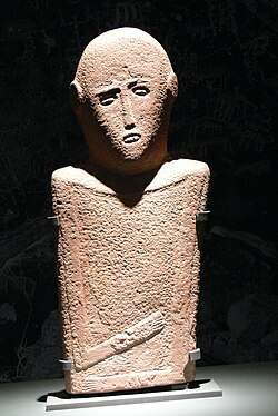 In the Neolithic period, prominent cultures such as Al-Magar, whose centre lay in modern-day southwestern Najd, flourished. Al-Magar could be considered a "Neolithic Revolution" in human knowledge and handicraft skills.[53] The culture is characterized as being one of the world's first to involve the widespread domestication of animals, particularly the horse.[54][55] Al-Magar statues were made from local stone, and it seems that the statues were fixed in a central building that might have had a significant role in the social and religious life of the inhabitants.[56]