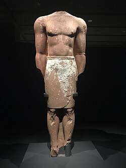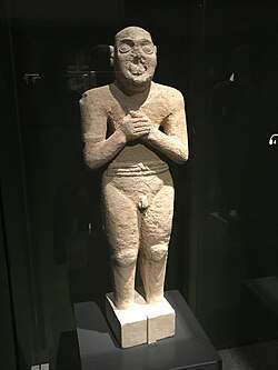 The earliest sedentary culture in Saudi Arabia dates back to the Ubaid period at Dosariyah. Climatic change and the onset of aridity may have brought about the end of this phase of settlement, as little archaeological evidence exists from the succeeding millennium.[64] The settlement of the region picks up again in the period of Dilmun in the early 3rd millennium. Known records from Uruk refer to a place called Dilmun, associated on several occasions with copper, and in later periods it was a source of imported woods in southern Mesopotamia. Scholars have suggested that Dilmun originally designated the Eastern Province, notably linked with the major Dilmunite settlements of Umm an-Nussi and Umm ar-Ramadh in the interior and Tarout on the coast. It is likely that Tarout Island was the main port and the capital of Dilmun.[63] Mesopotamian inscribed clay tablets suggest that, in the early period of Dilmun, a hierarchical organized political structure existed. In 1966, an earthwork in Tarout exposed an ancient burial field that yielded a large statue dating to the Dilmunite period (mid 3rd millennium BC). The statue was locally made under the strong Mesopotamian influence on the artistic principle of Dilmun.[63]