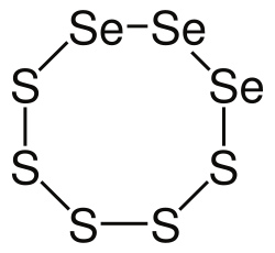 - ^ Pekonen P, Hiltunen Y, Laitinen RS, Pakkanen TA (1991). "Chalcogen ring interconversion pathways. 77Se NMR spectroscopic study of the decomposition of 1,2,3,4,5-Se5S2 to 1,2,3,4,5,6-Se6S2 and 1,2,3,4-Se4S2". Inorganic Chemistry. 30 (19): 3679. doi:10.1021/ic00019a022.