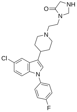 - ^ "TRC | Details of CAS = 173294-84-3, ChemicalName = Dehydrosertindole, synonym = 1-[2-[4-[5-Chloro-1-(4-fluorophenyl)-1H-indol-3-yl]-1-piperidinyl]ethyl]-1,3-dihydro-2H-Imidazol-2-one; Lu 28-092, MolFormula = C24H24ClFn4O". Archived from the original on 27 April 2015. Retrieved 20 April 2015.
