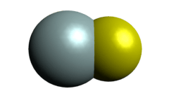 Silicon monosulfide is a chemical compound of silicon and sulfur. The chemical formula is SiS. Molecular SiS has been detected at high temperature in the gas phase.[1] The gas phase molecule has an Si-S bondlength of 192.93 pm, this compares to the normal single bond length of 216 pm,[1][2] and is shorter than the Si=S bond length of around 201 pm reported in an organosilanethione.[1] Historically a pale yellow-red amorphous solid compound has been reported.[3] The behavior of silicon can be contrasted with germanium which forms a stable solid monosulfide.