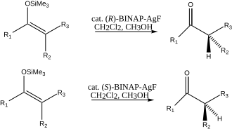 - ^ Yanagisawa, Akira; Touge, Taichiro; Takayoshi, Arai (2005). "Enantioselective Protonation of Silyl Enolates Catalyzed by a Binap⋅AgF Complex". Angewandte Chemie International Edition. 44 (10): 1546–8. Bibcode:2005ACIE...44.1546Y. doi:10.1002/anie.200462325. PMID 15645475.