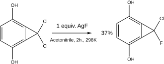 - ^ Muller, Paul; Etienne, Robert; Pfyfer, Jean; Pinenda, Nelson; Schipoff, Michel (1978). "Allylic Reactions of Benzocyclopropenes. Discrimination of Halogen Substituents in 1,l-Dihalogenobenzocyclopropenes". Helvetica Chimica Acta. 61 (7): 2482–8. doi:10.1002/hlca.19780610719.