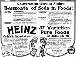 In the 19th century, sodium benzoate as a food ingredient was investigated by Harvey W. Wiley with his 'Poison Squad' as part of the US Department of Agriculture. This led to the 1906 Pure Food and Drug Act, a key event in the early history of food regulation in the United States.