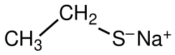 Sodium ethanethiolate is an organosulfur compound with the formula CH3CH2SNa. It is the sodium salt of the conjugate base of ethanethiol. This compound is commercially available as a white solid that is soluble in polar organic solvents. Sodium ethanethiolate is a reagent in organic synthesis. Hydrolysis of sodium ethanethiolate, e.g. in humid air, produces ethanethiol, which has a low odor threshold and a noxious "rotten egg" smell.