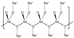 it is structurally analogous to sodium metasilicate, Na2SiO3, consisting of polymeric GeO32− anions made up of vertex sharing {GeO4} tetrahedra.[1][2]