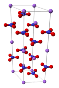 The first shipment of saltpeter to Europe arrived in England from Peru in 1820 or 1825, right after that country's independence from Spain, but did not find any buyers and was dumped at sea in order to avoid customs toll.[6][7] With time, however, the mining of South American saltpeter became a profitable business (in 1859, England alone consumed 47,000 metric tons).[7] Chile fought the War of the Pacific (1879–1884) against the allies Peru and Bolivia and took over their richest deposits of saltpeter. In 1919, Ralph Walter Graystone Wyckoff determined its crystal structure using X-ray crystallography.