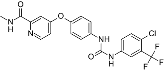 - ^ Wilhelm SM, Adnane L, Newell P, Villanueva A, Llovet JM, Lynch M (October 2008). "Preclinical overview of sorafenib, a multikinase inhibitor that targets both Raf and VEGF and PDGF receptor tyrosine kinase signaling". Molecular Cancer Therapeutics. 7 (10): 3129–3140. doi:10.1158/1535-7163.MCT-08-0013. PMC 12261297. PMID 18852116.