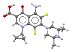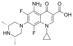 - ^ Johnson JH, Cooper MA, Andrews JM, Wise R (November 1992). "Pharmacokinetics and inflammatory fluid penetration of sparfloxacin". Antimicrobial Agents and Chemotherapy. 36 (11): 2444–2446. doi:10.1128/aac.36.11.2444. PMC 284350. PMID 1336947.