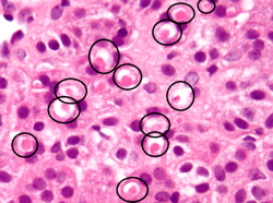 A potential side effect of spironolactone is hyperkalemia (high potassium levels), which in severe cases, can be life-threatening.[7] Hyperkalemia can present as a normal anion-gap metabolic acidosis.[7] The addition of spironolactone to loop diuretics in people with heart failure reportedly was associated with a higher risk of hyperkalemia and acute kidney injury.[129] Spironolactone may put people at a heightened risk for gastrointestinal issues such as nausea, vomiting, diarrhea, cramping, and gastritis.[7][130] In addition, some evidence suggests an association between use of the medication and bleeding from the stomach and duodenum,[7] though a causal relationship between the two has not been established.[131][132] Also, spironolactone is immunosuppressive in the treatment of sarcoidosis.[133]
