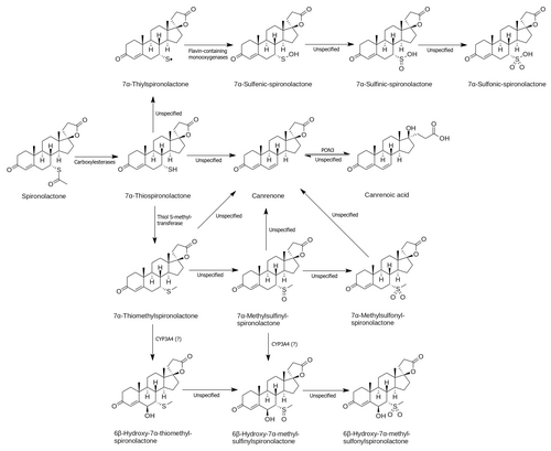 - ^ Overdiek HW, Merkus FW (1987). "The metabolism and biopharmaceutics of spironolactone in man". Reviews on Drug Metabolism and Drug Interactions. 5 (4): 273–302. doi:10.1515/DMDI.1987.5.4.273. PMID 3333882. S2CID 29482256.